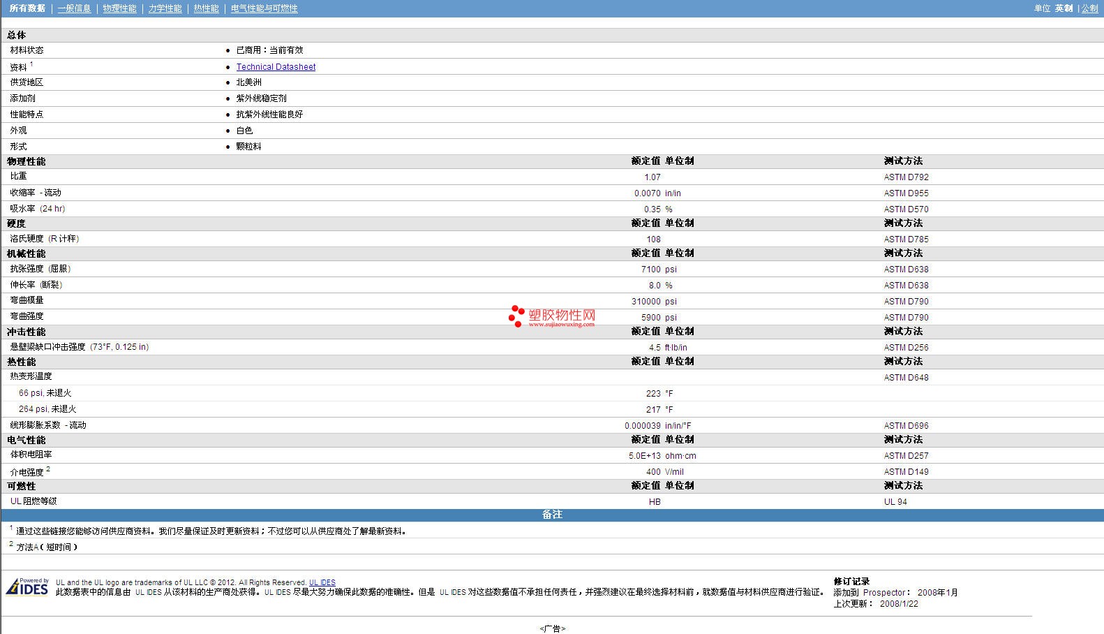 更多HiFill ASA 778 UV WT168 物性表报价,图片、材质证明、UL黄卡、物质安全资料表(MSDS)等可来电咨询赵先生:13424755533或QQ: 27660005