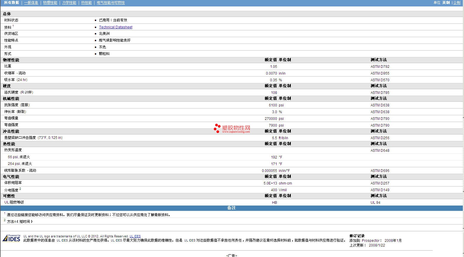 VALOX pbt b V2105U Resin物性表