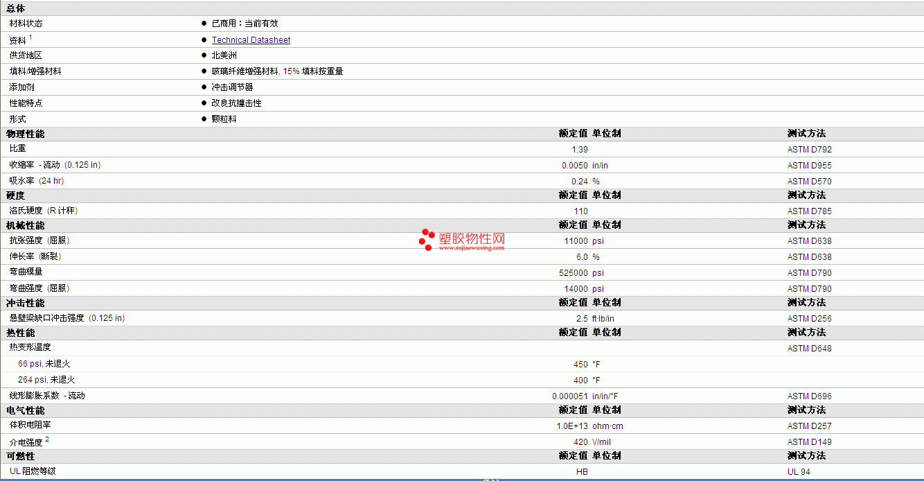 | 机械性能 | 额定值 | 单位制 | 测试方法 |
