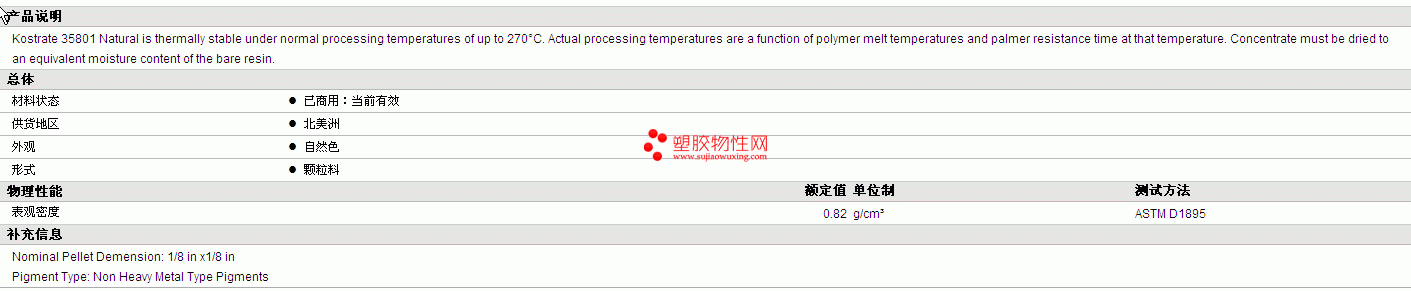 Kostrate PET 35801 物性表 详细情况如图