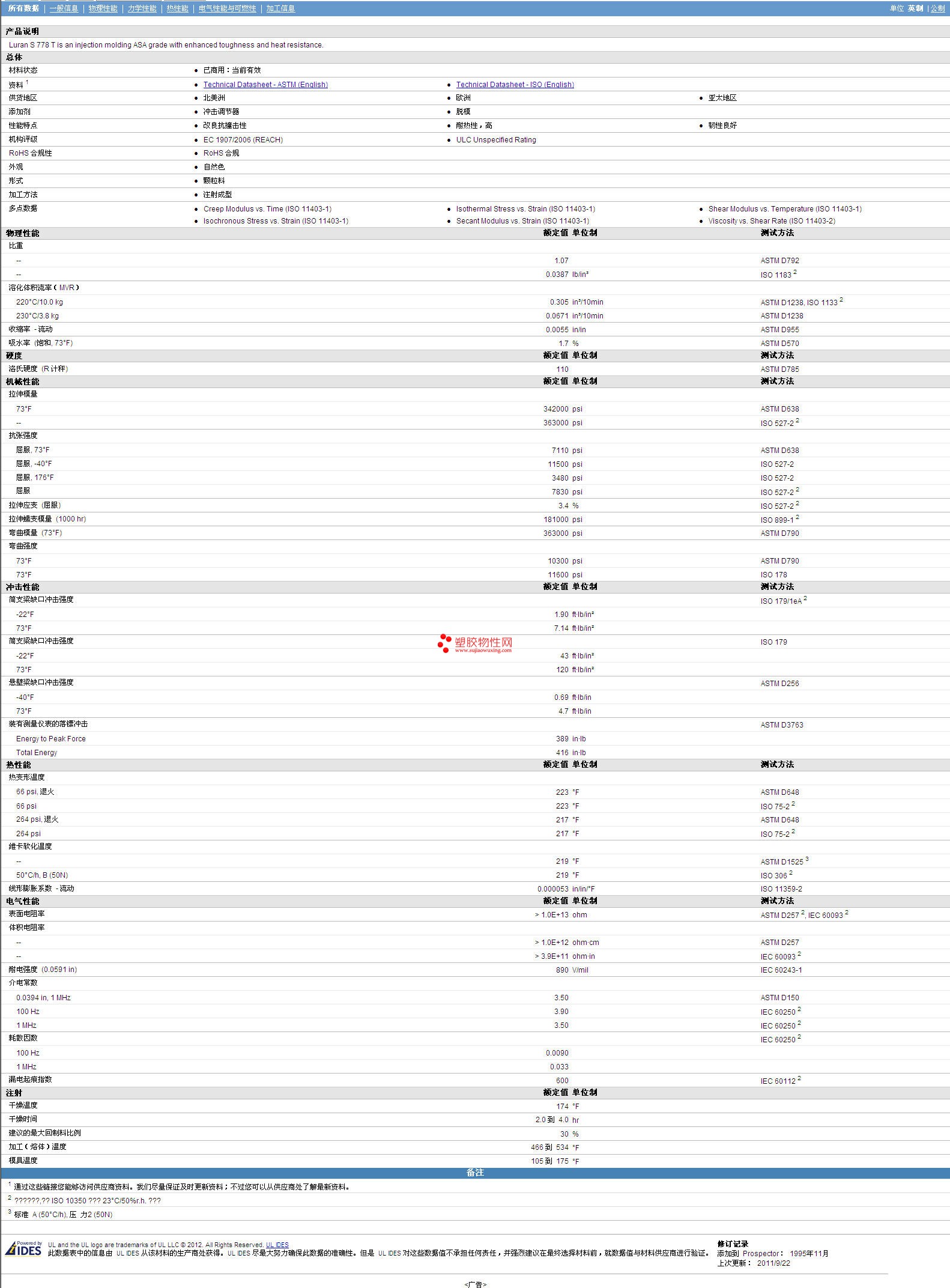 需了解Luran ASA S 778 T 物性表材质证明、ROHS(SGS)报告、物质安全资料表(MSDS)、UL黄卡等可来电咨询:赵先生:13424755533或QQ: 27660005