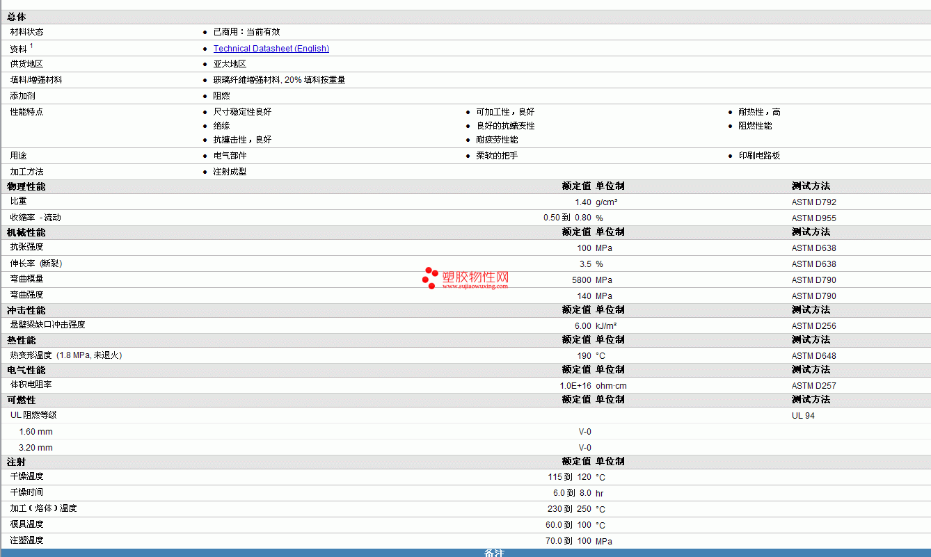 Yuyao PBT 3058G20物性表 见图片