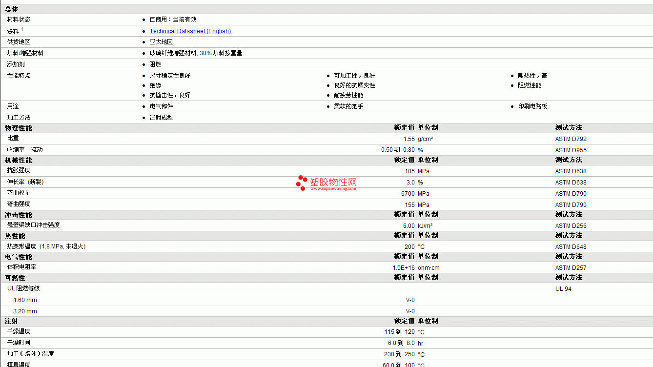 Yuyao PBT 3060G30物性表 见图片