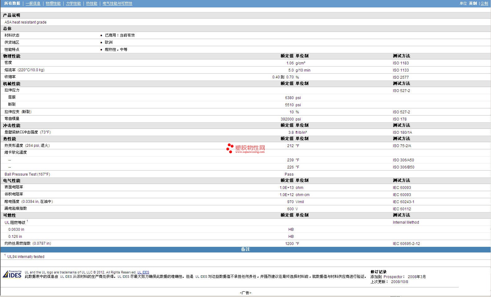 更多Polyfast ASA SA002 物性表报价,图片、材质证明、UL黄卡、物质安全资料表(MSDS)等可来电咨询赵先生:13424755533或QQ: 27660005