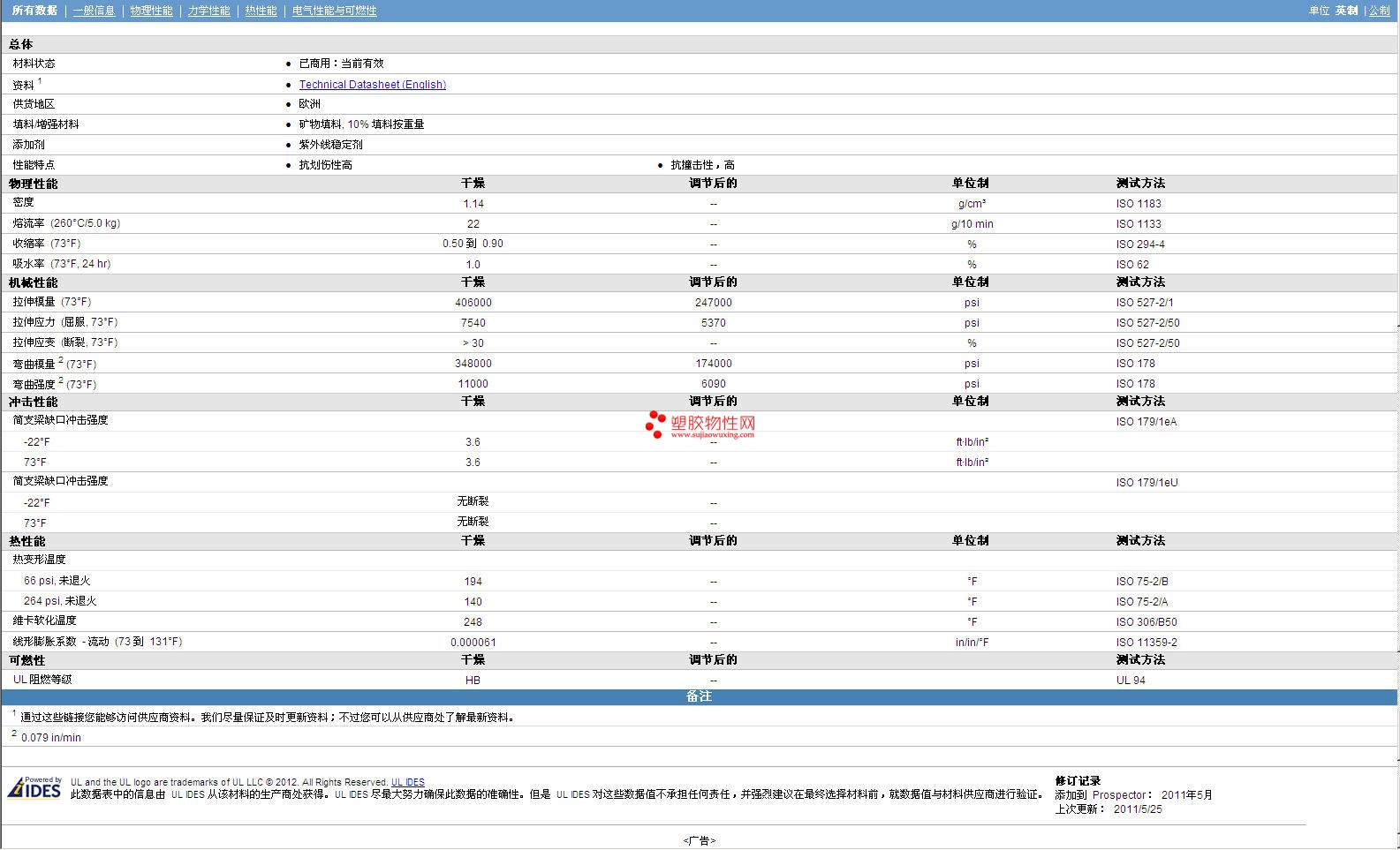 其他工程塑料物性表