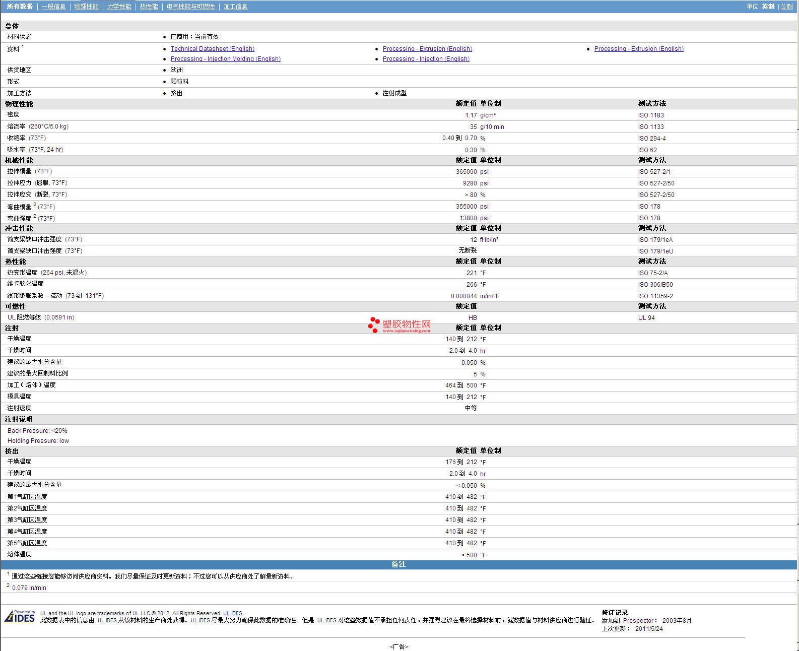 其他工程塑料物性表