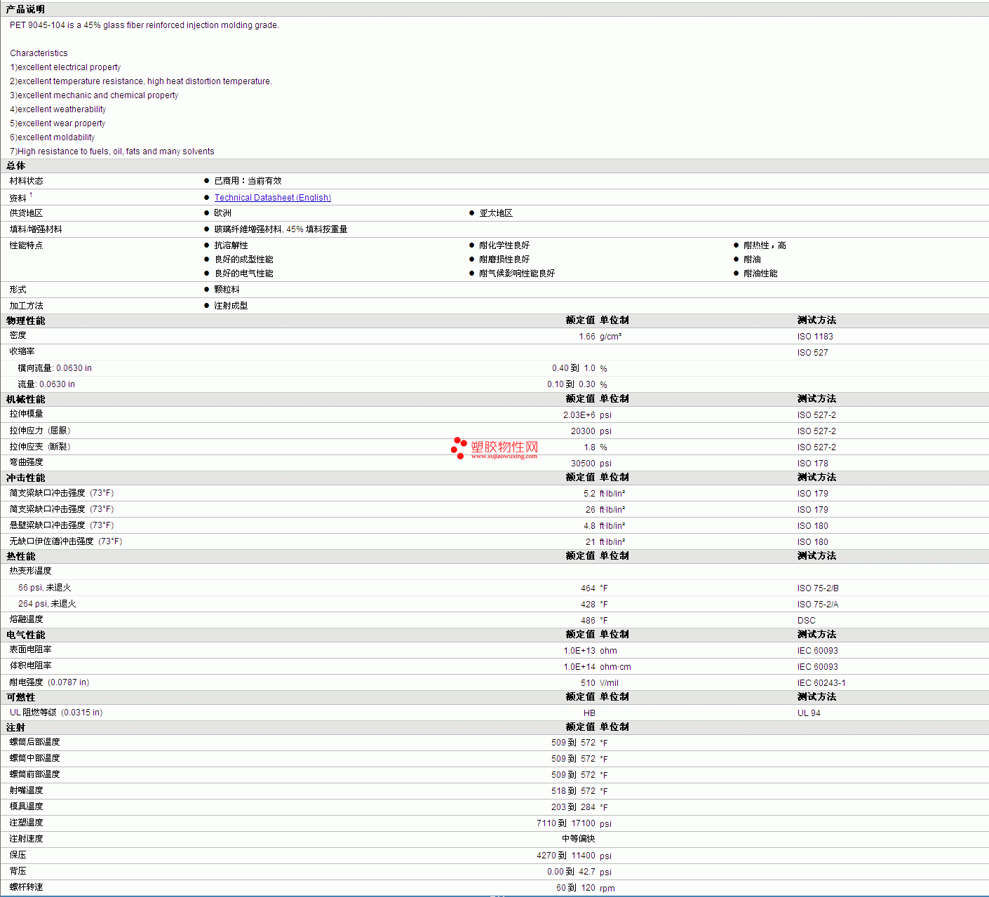 | 拉伸模量 | 2.03E+6 | psi | ISO 527-2 |