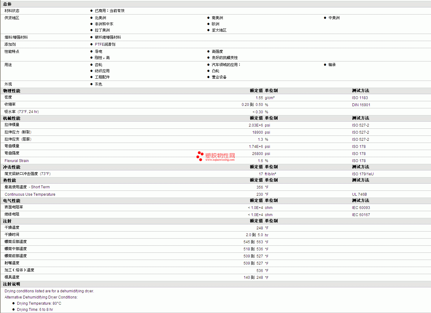 | 拉伸模量 | 2.03E+6 | psi | ISO 527-2 |