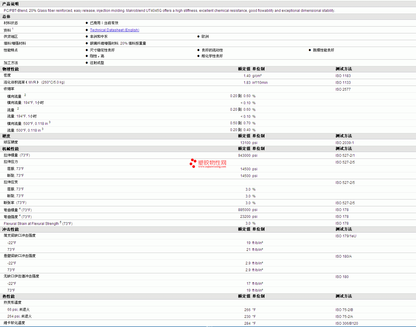 Makroblend PET UT4045 G 物性表 更多资料见图