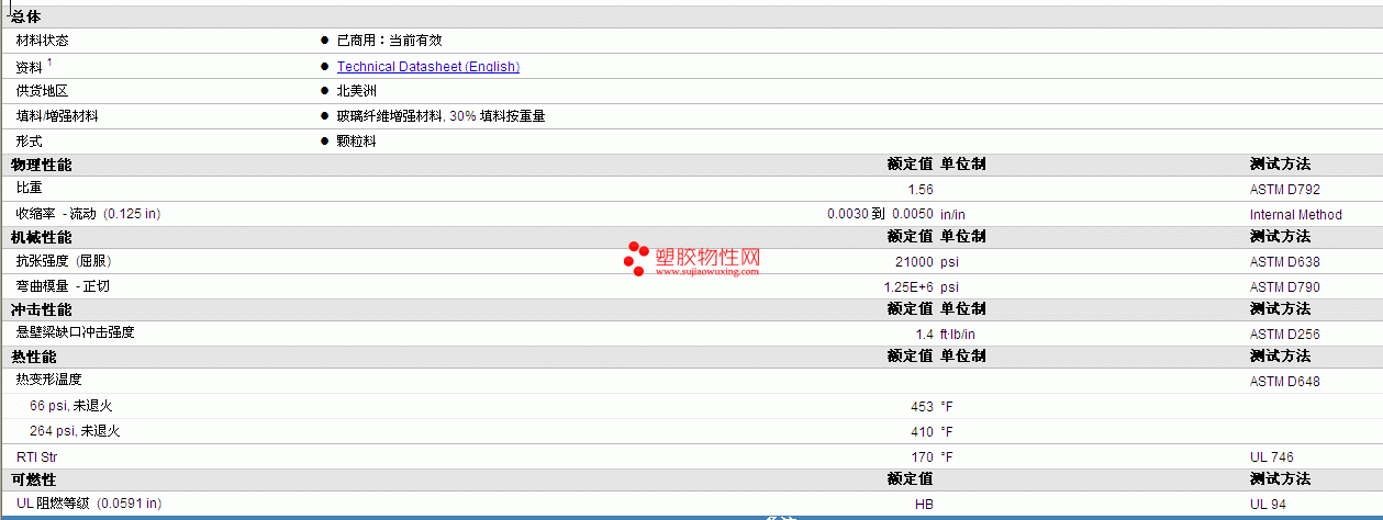 | 弯曲模量 - 正切 | 1.25E+6 | psi | ASTM D790 |