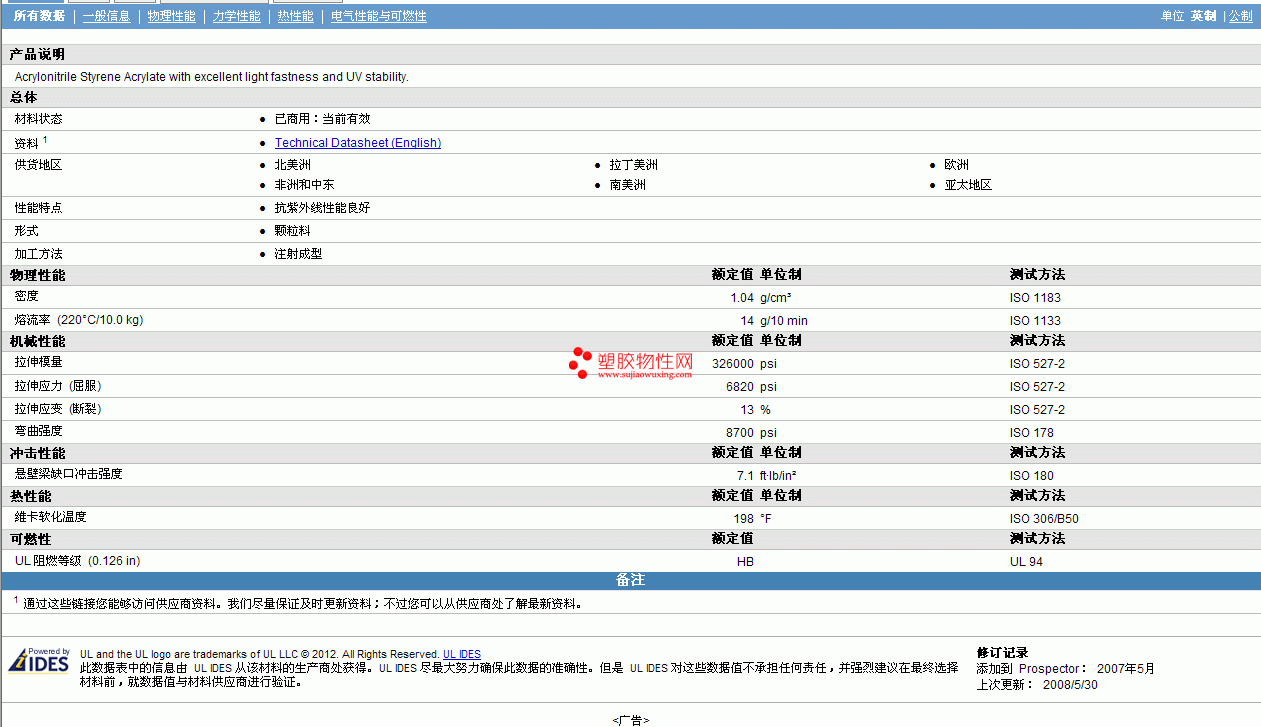 更多 Ronfalin ASA ASA30U 物性表报价,图片、材质证明、UL黄卡、物质安全资料表(MSDS)等,最新行情报价等可来电咨询赵先生:13424755533 或QQ:27660005