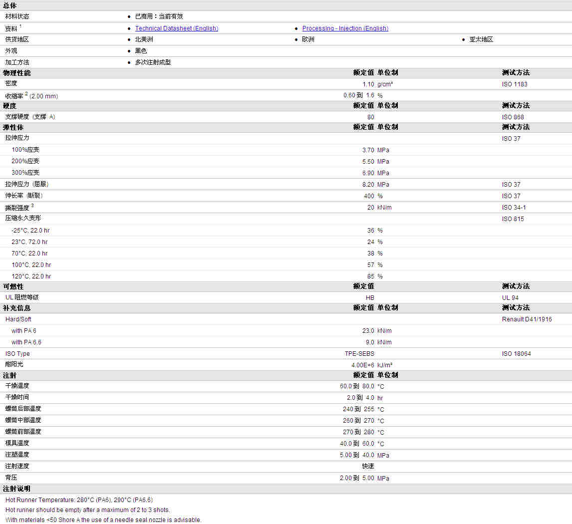 | 弹性体 | 额定值 | 单位制 | 测试方法 |