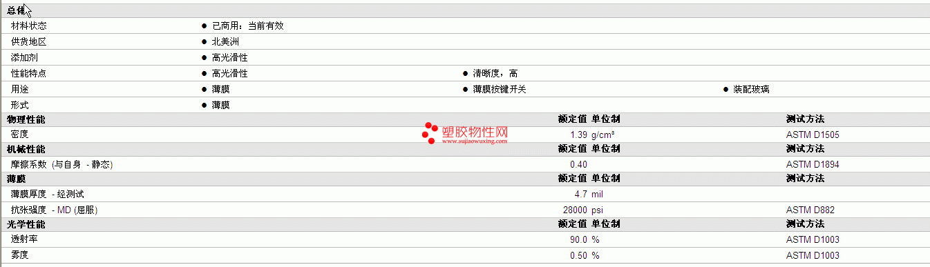 Mylar PET D (500 guage) 物性表 详情见附件