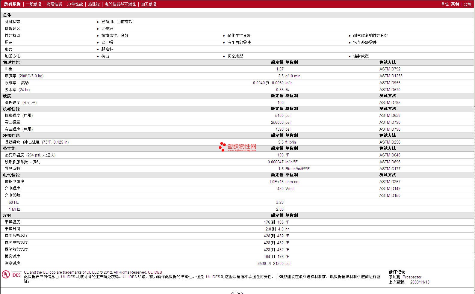 其他工程塑料物性表
