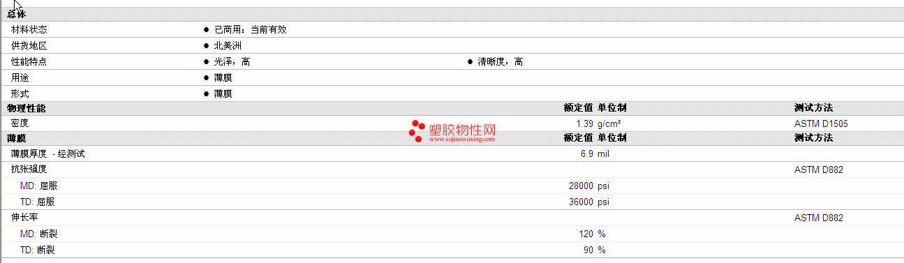 Mylar PET J (700 guage) 物性表 更多资料见图