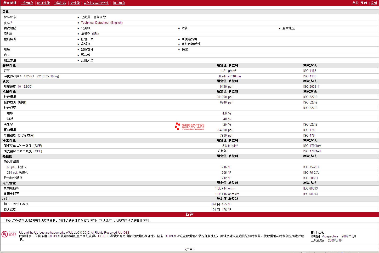 其他工程塑料物性表