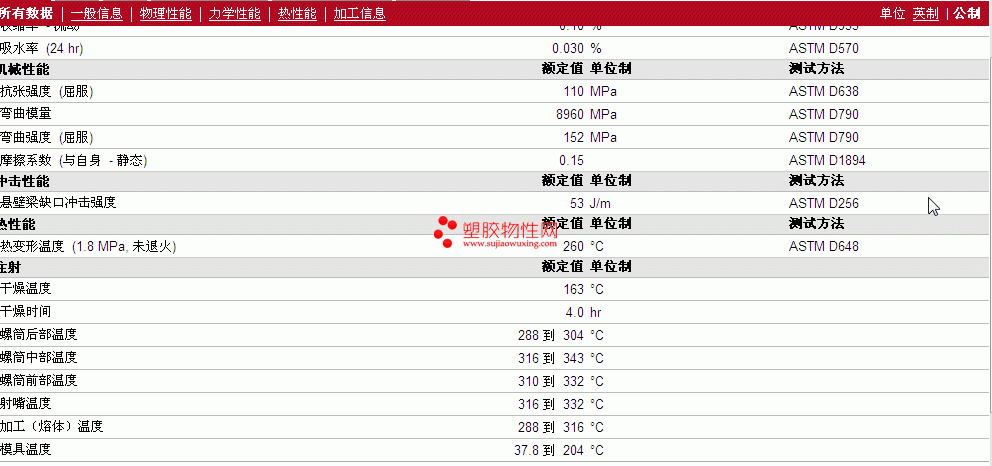 | 收缩率 - 流动 | 0.10 | % | ASTM D955 |