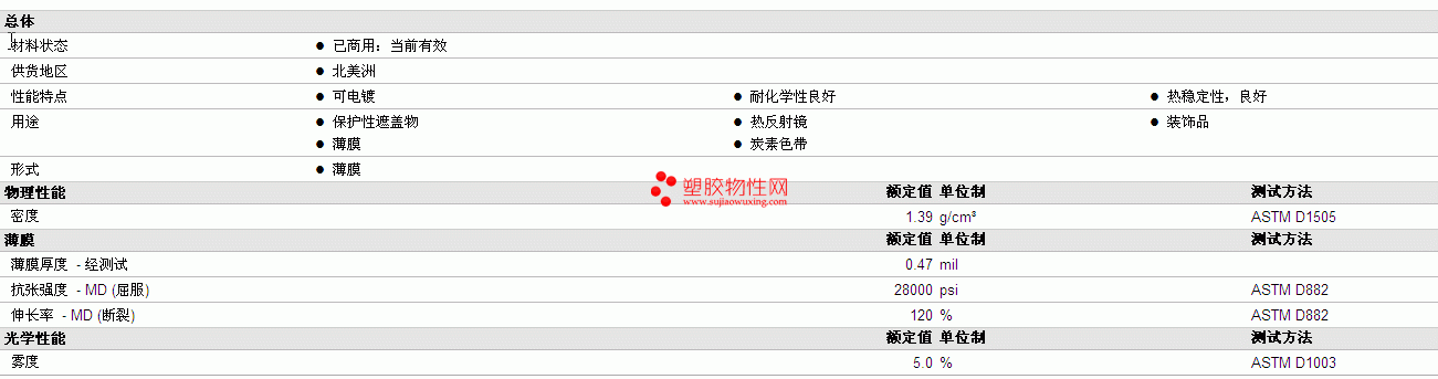 如需了解Mylar PET S (48 guage) 物性表更多详情,ROHS(SGS)报告、物质安全资料表(MSDS)、材质证明、UL黄卡等,最新行情报价等可来电咨询:赵先生:13424755533。或QQ:27660005