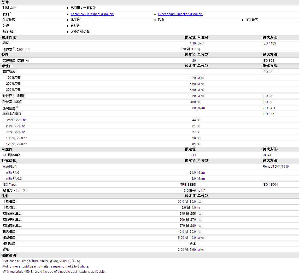 | 拉伸应力 (屈服) | 8.20 | MPa | ISO 37 |