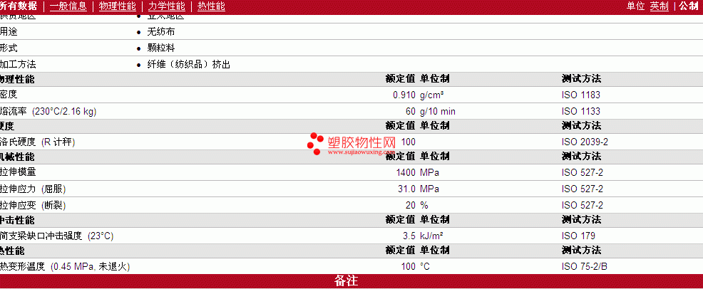 | 机械性能 | 额定值 | 单位制 | 测试方法 |