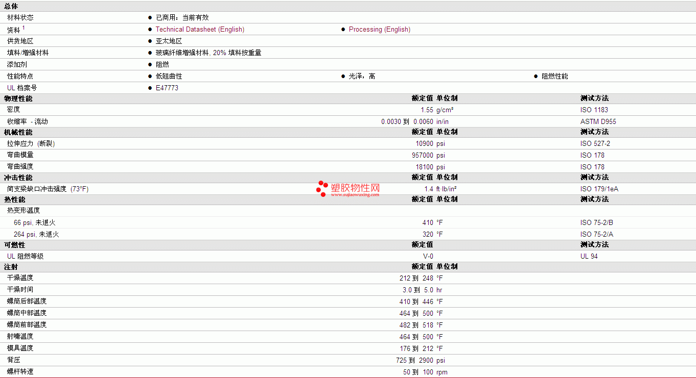 | 机械性能 | 额定值 | 单位制 | 测试方法 |