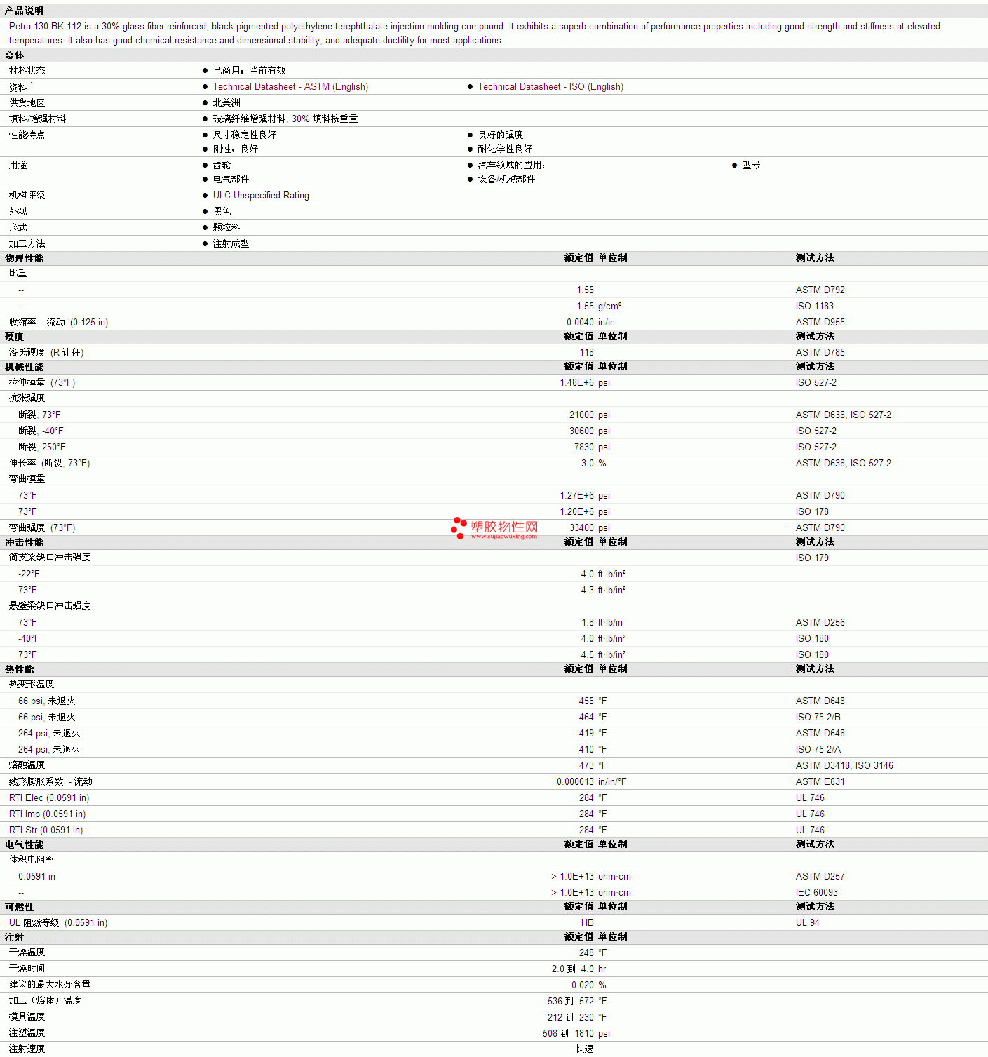 如需了解Petra PET 130 BK-112 物性表更多详情,ROHS(SGS)报告、物质安全资料表(MSDS)、材质证明、UL黄卡等,最新行情报价等可来电咨询:赵先生:13424755533。或QQ:27660005