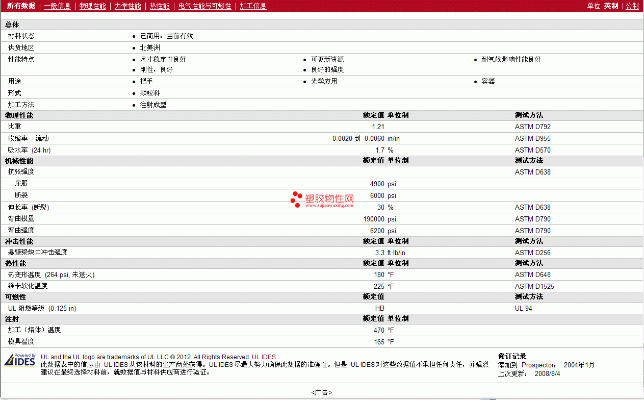 Acrylate Styrene Acrylonitrile (ASA) WG1700(f2) UL黄卡