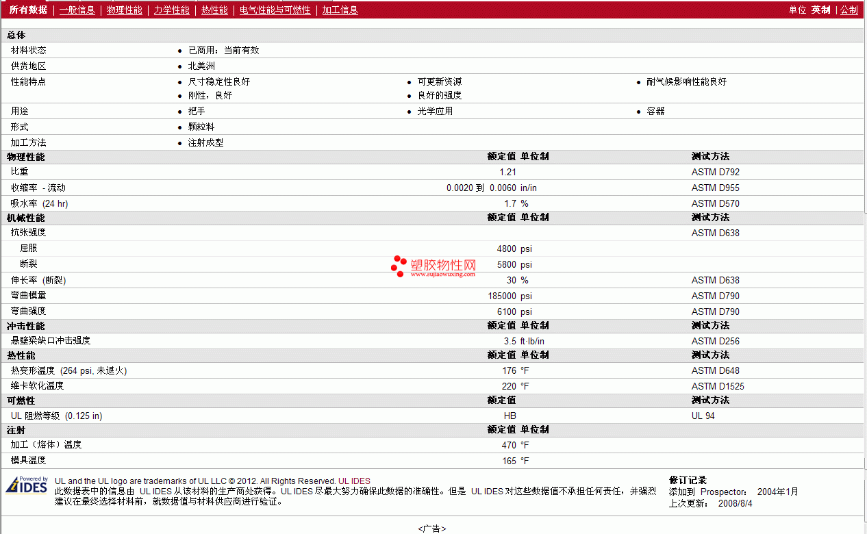 其他工程塑料物性表