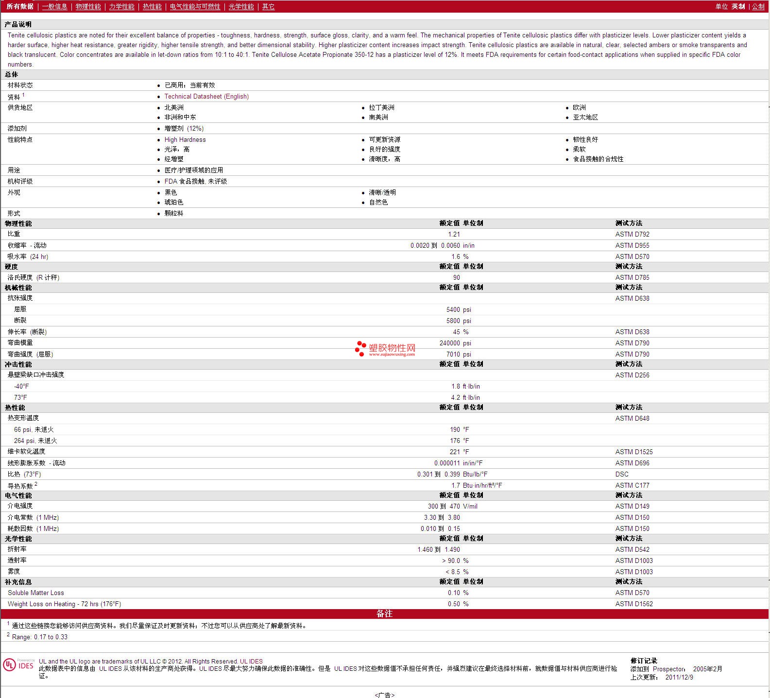 更多Tenite Propionate CAP 350E0096912 Natural, Trsp 物性表报价,图片、材质证明、UL黄卡、物质安全资料表(MSDS)等可来电咨询赵先生:13424755533或QQ: 27660005