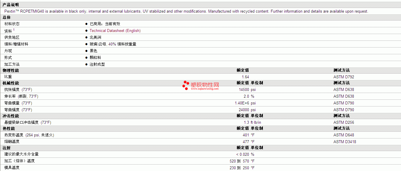 PEXTIN PET RCPETMIG40L-BK09 物性表 更多资料见图