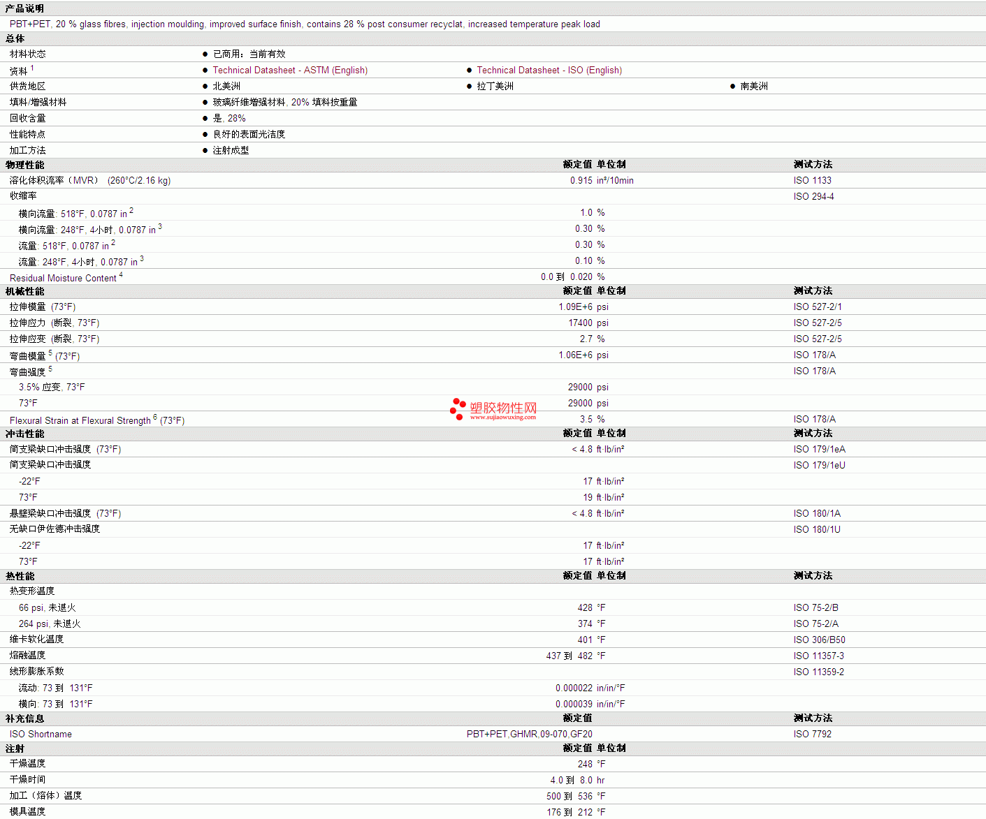 | 溶化体积流率(MVR) (260°C/2.16 kg) | 0.915 | in³/10min | ISO 1133 |