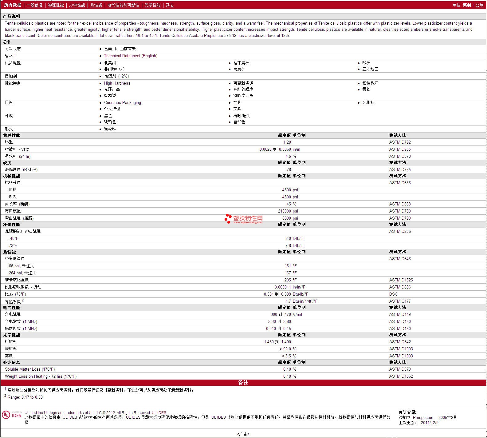 Tenite Propionate CAP 375E4000012 Clear Trsp 物性表