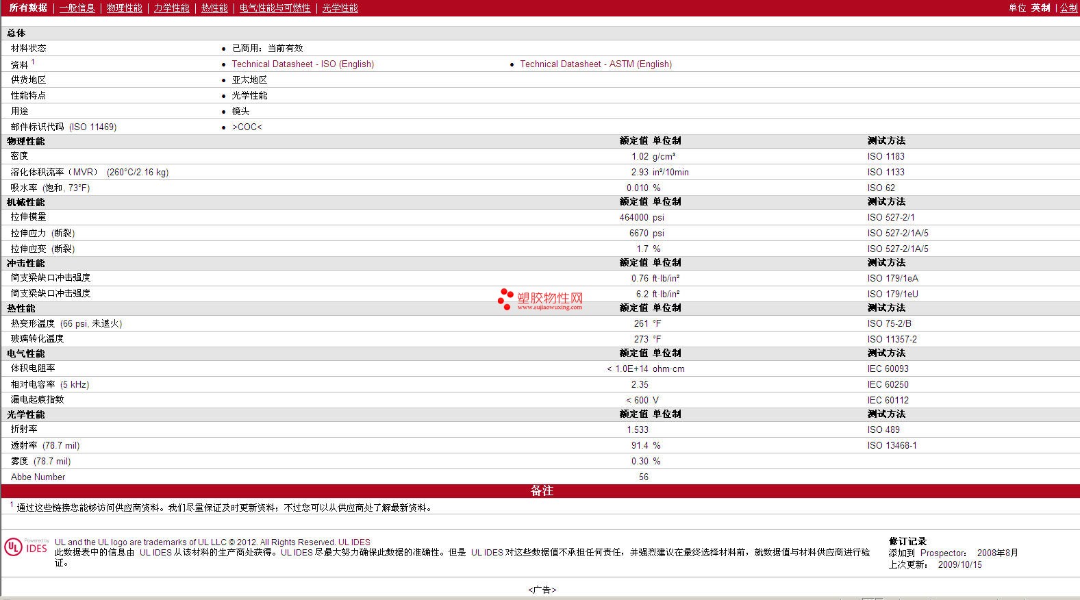 需了解Topas COC 5013LS-01 物性表材质证明、ROHS(SGS)报告、物质安全资料表(MSDS)、UL黄卡等可来电咨询:赵先生:13424755533或QQ: 27660005