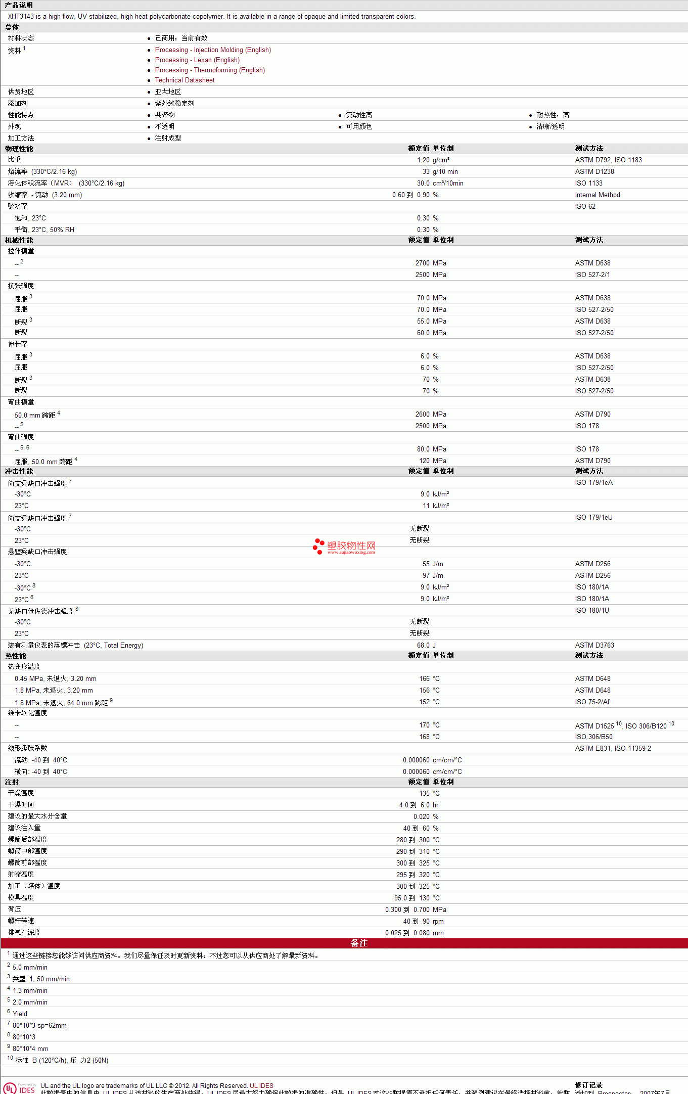| 溶化体积流率(MVR) (330°C/2.16 kg) | 30.0 | cm³/10min | ISO 1133 |