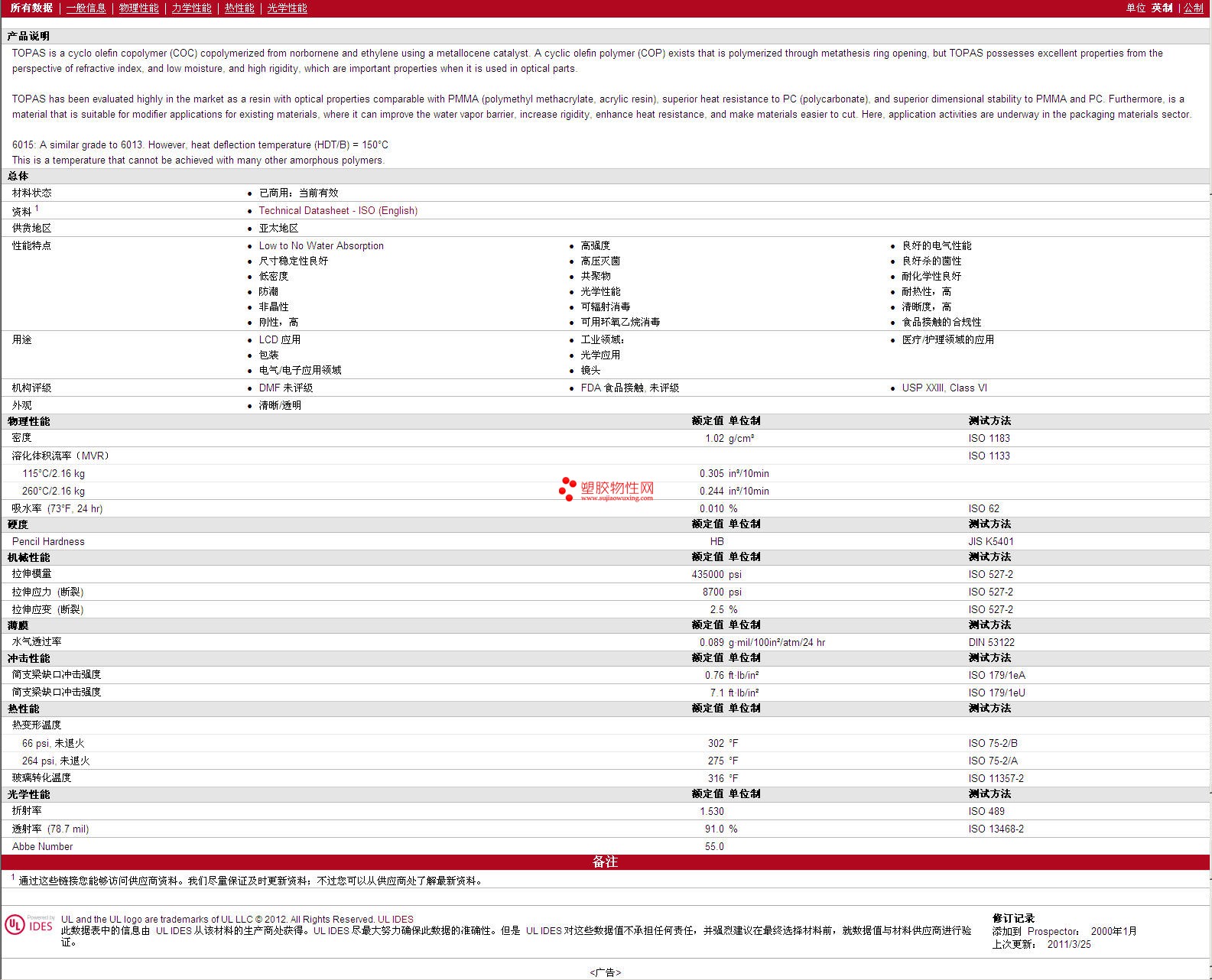 Topas COC 6015 物性表