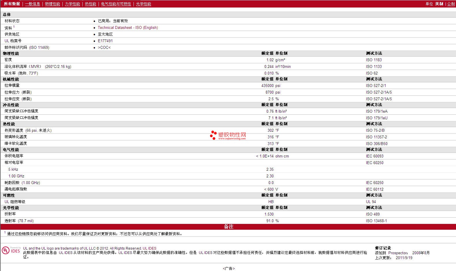 需了解Topas COC 6015S-04 物性表材质证明、ROHS(SGS)报告、物质安全资料表(MSDS)、UL黄卡等可来电咨询:赵先生:13424755533或QQ: 27660005