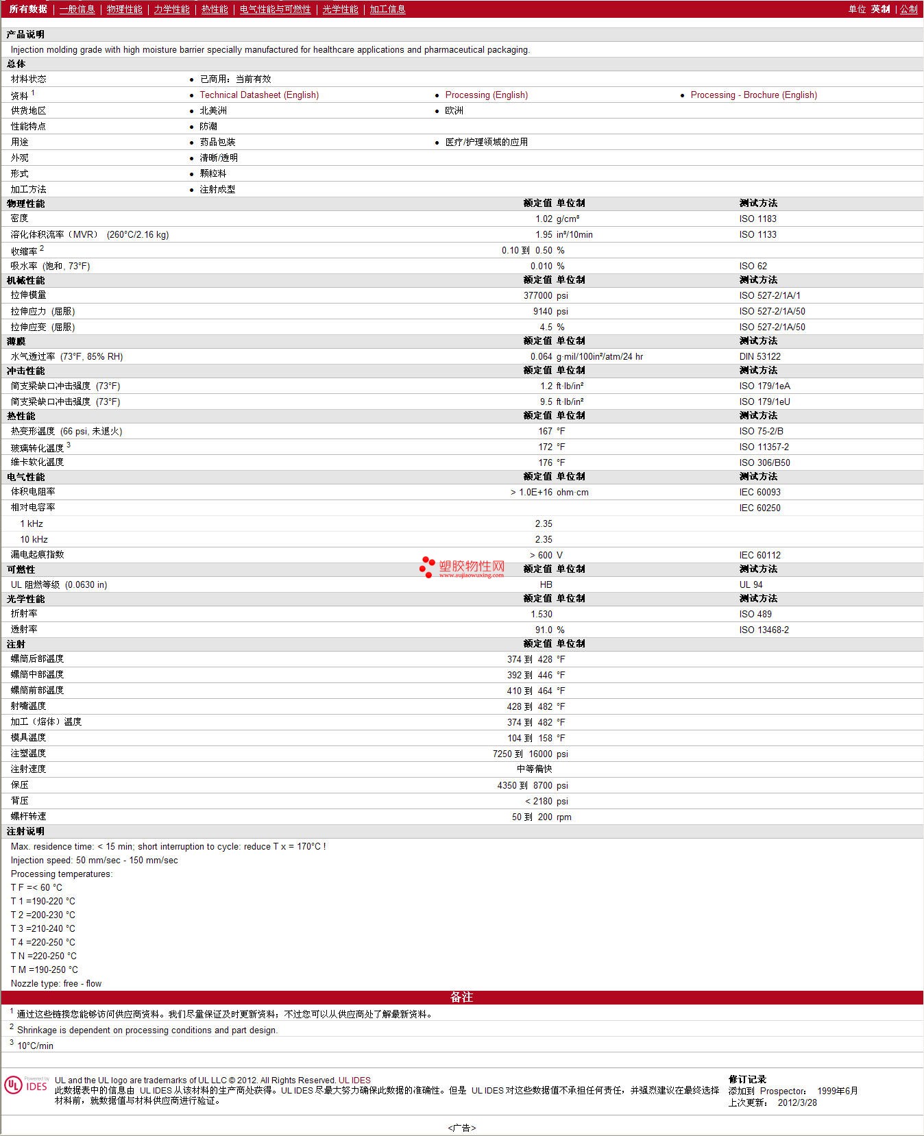更多Topas COC 8007S 物性表报价,图片、材质证明、UL黄卡、物质安全资料表(MSDS)等,最新行情报价等可来电咨询赵先生:13424755533 或QQ:27660005