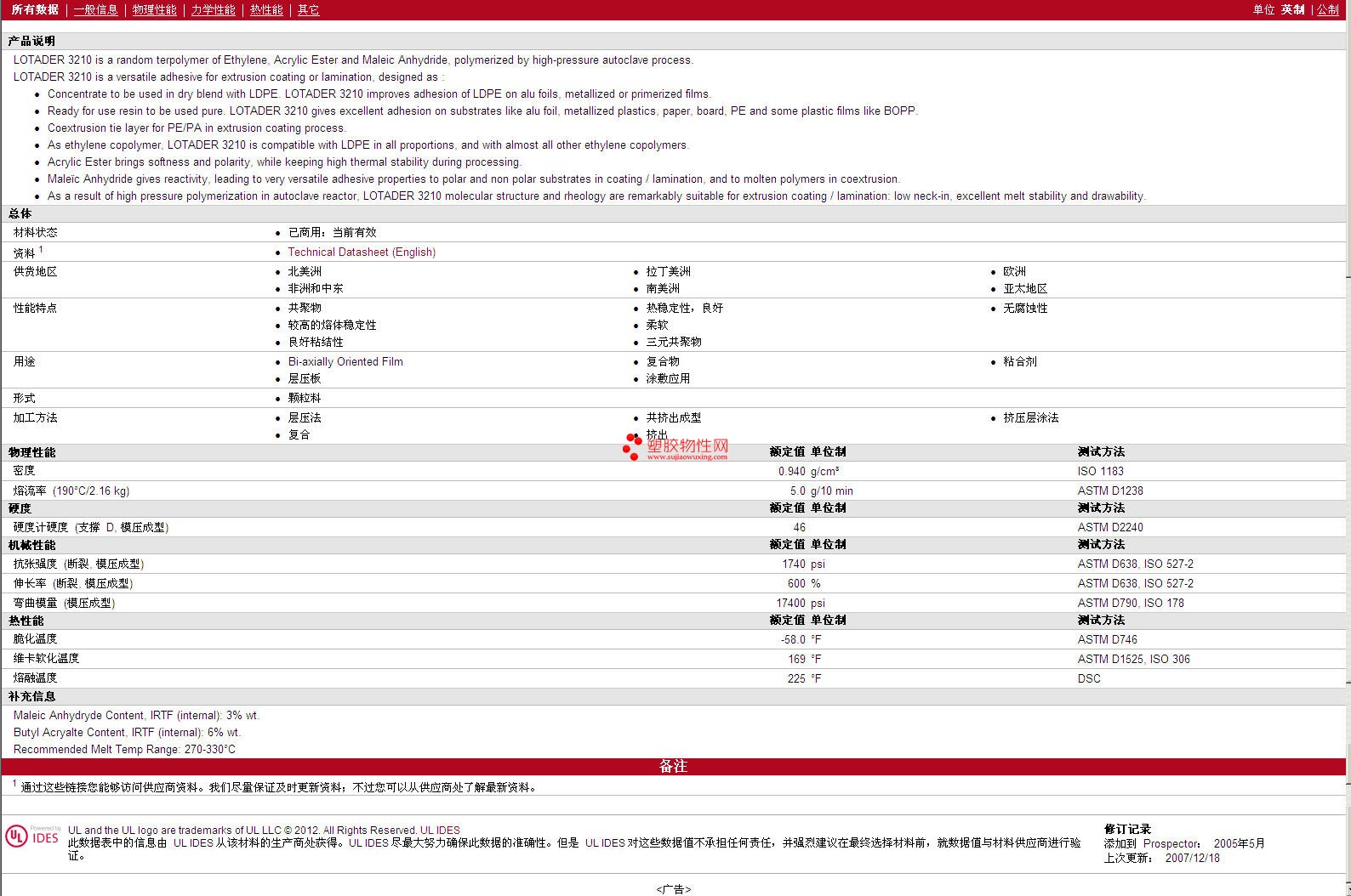 更多Lotader EBA 3210 物性表报价,图片、材质证明、UL黄卡、物质安全资料表(MSDS)等可来电咨询赵先生:13424755533或QQ: 27660005