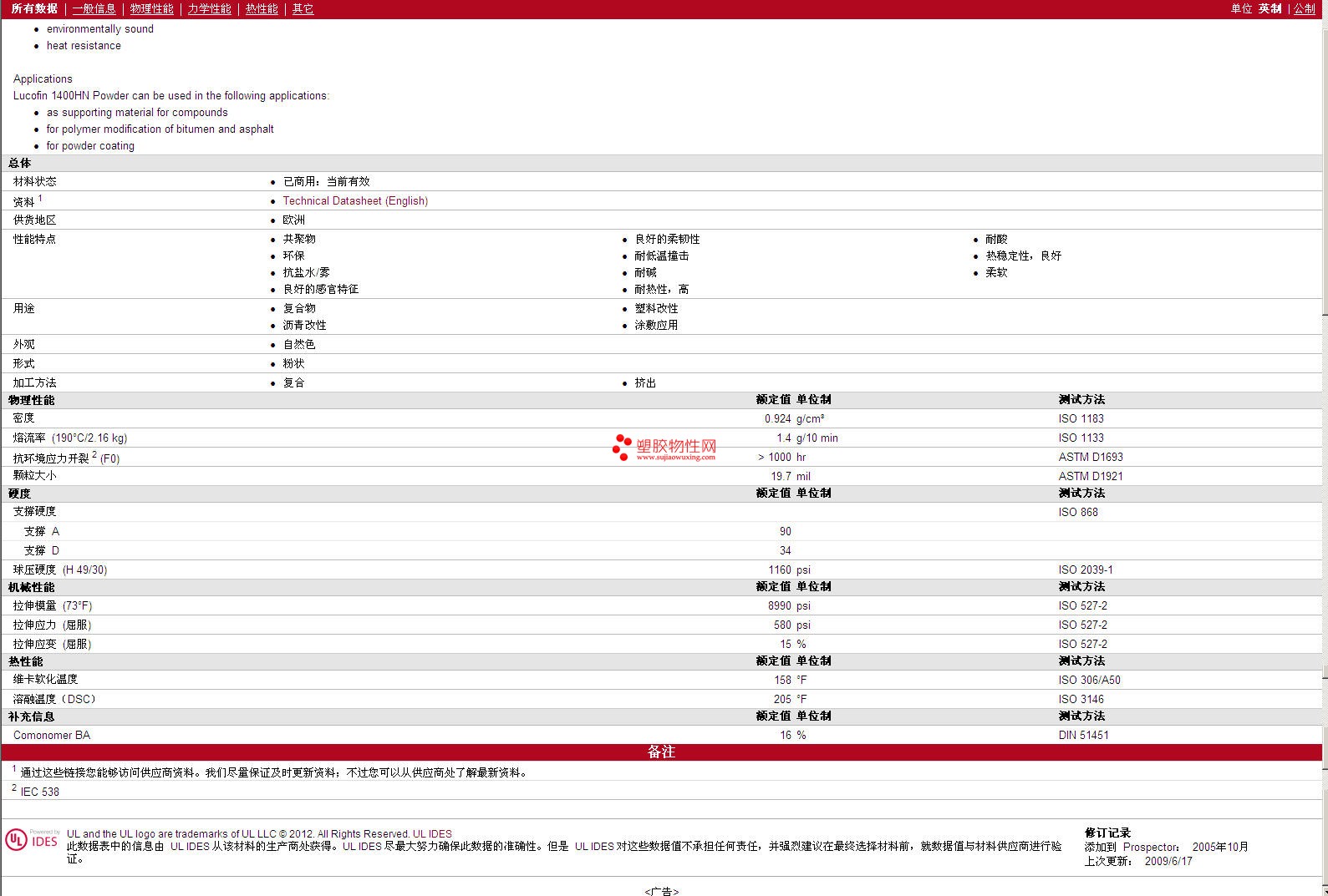 更多Lucofin EBA 1400HN Powder 物性表报价,图片、材质证明、UL黄卡、物质安全资料表(MSDS)等可来电咨询赵先生:13424755533或QQ: 27660005
