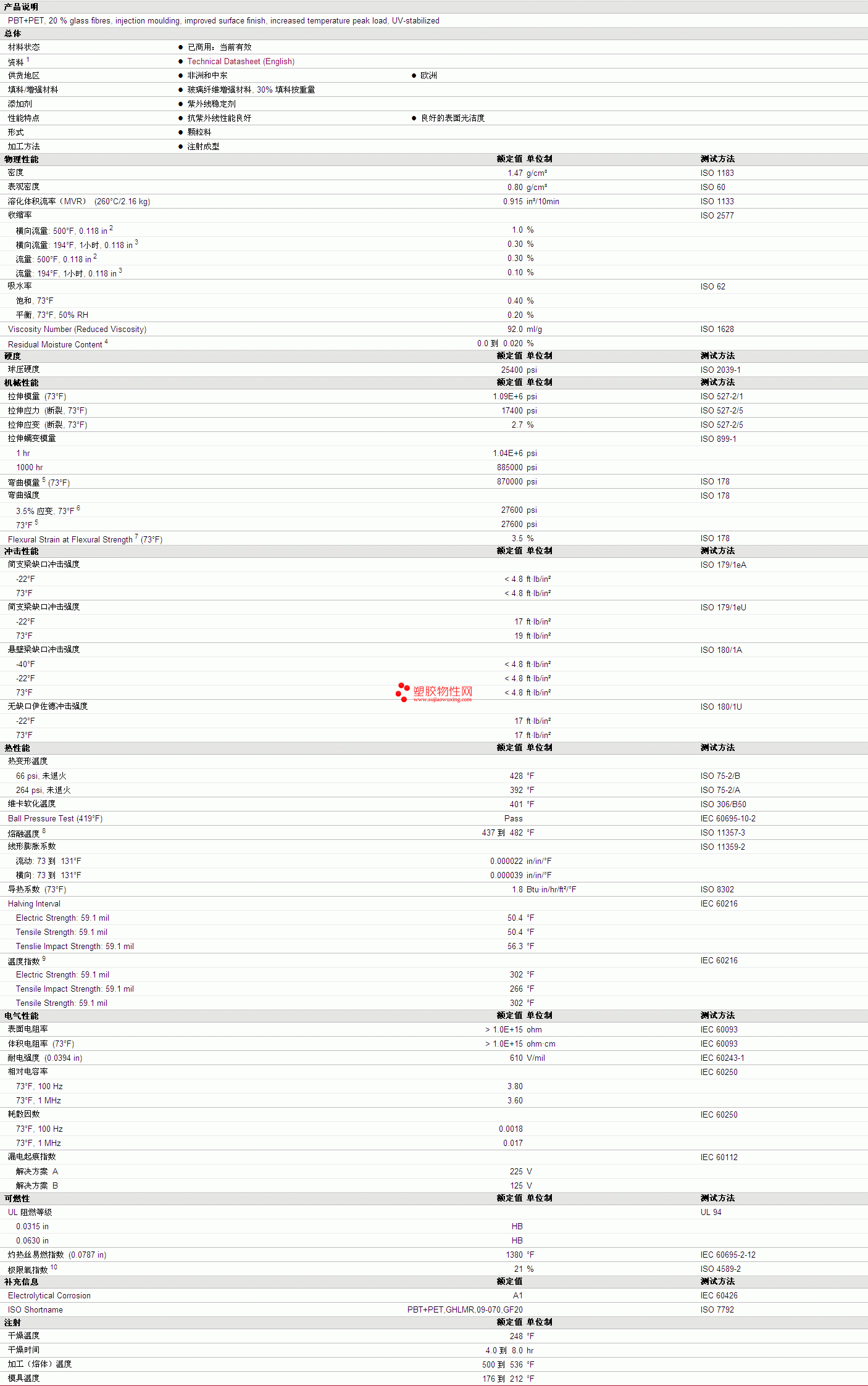 | 溶化体积流率(MVR) (260°C/2.16 kg) | 0.915 | in³/10min | ISO 1133 |