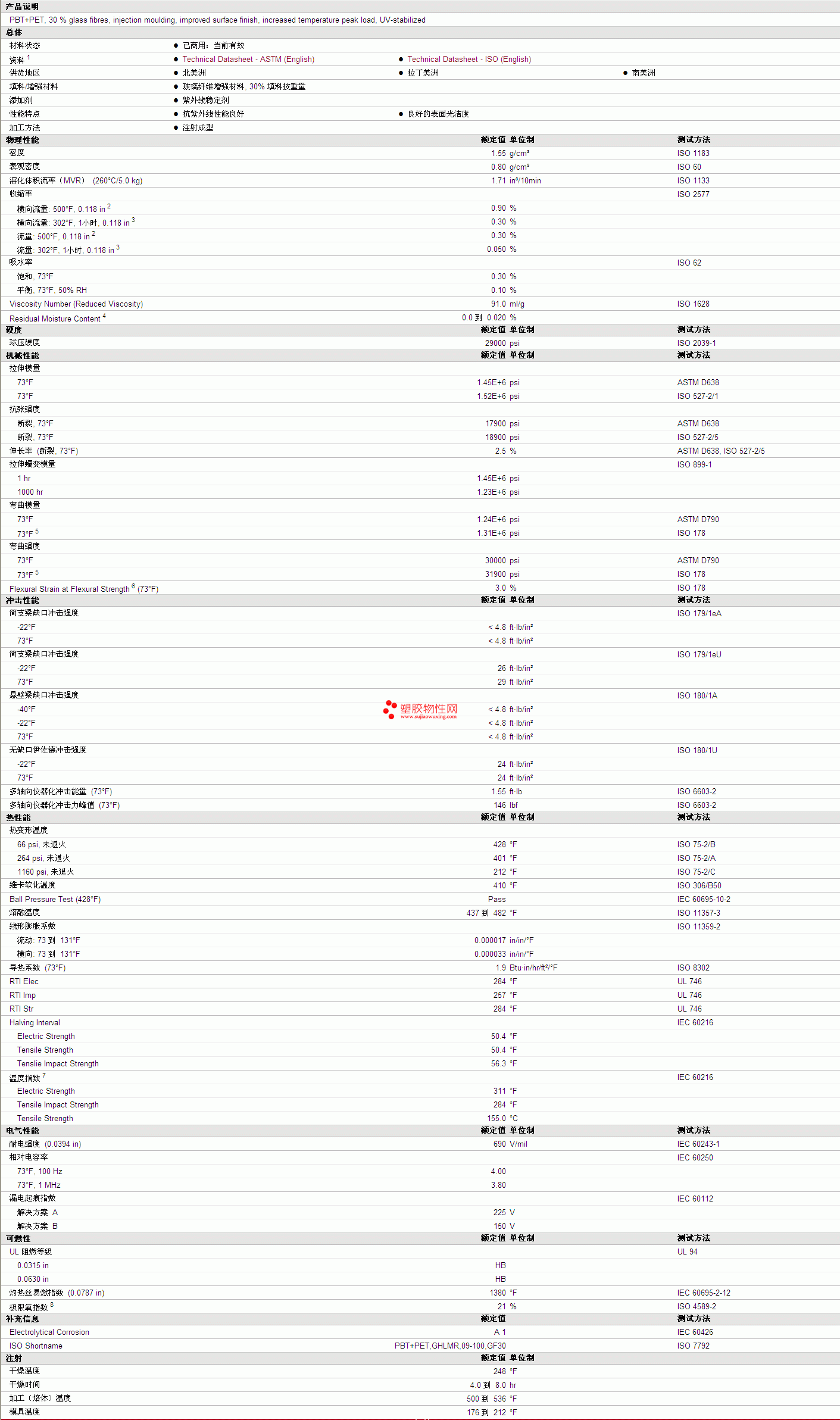 其他工程塑料物性表
