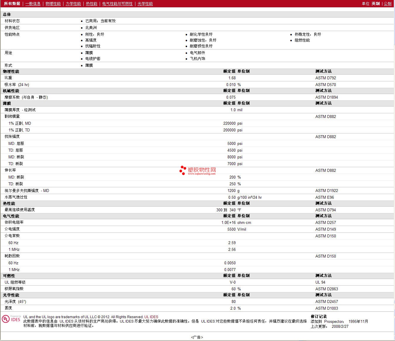 更多Korton E CTFE物性表报价,图片、材质证明、UL黄卡、物质安全资料表(MSDS)等,最新行情报价等可来电咨询赵先生:13424755533 或QQ:27660005