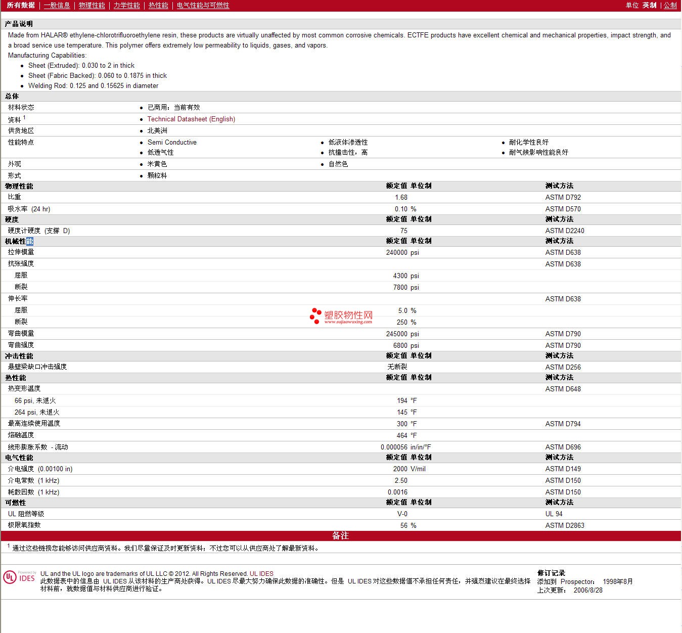更多Westlake ECTFE物性表图片,报价、物质安全资料表(MSDS)、材质证明、UL黄卡等,最新行情报价等可来电咨询赵先生:13424755533 或QQ:27660005