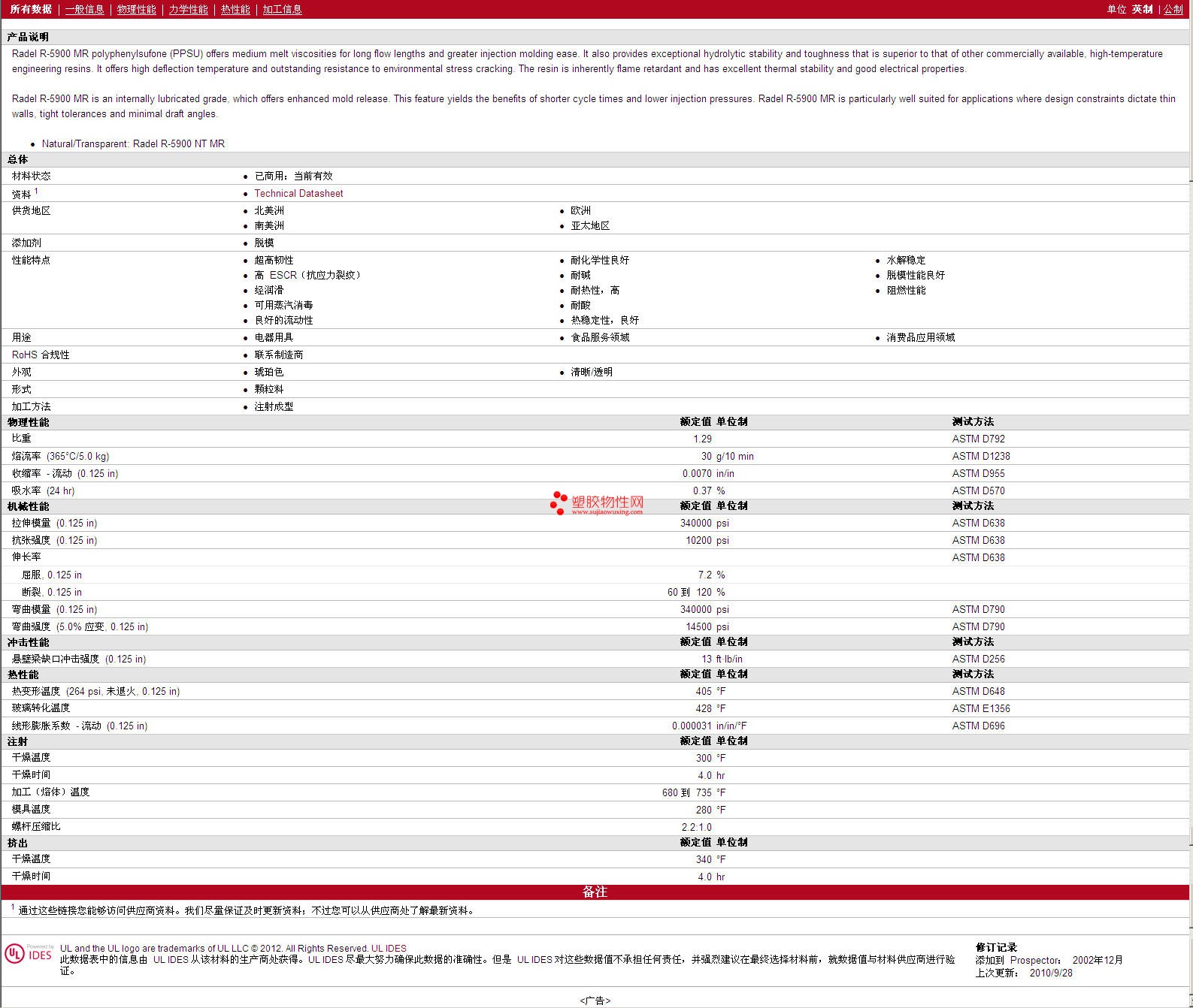 Radel PPSU R-5900 MR 物性表
