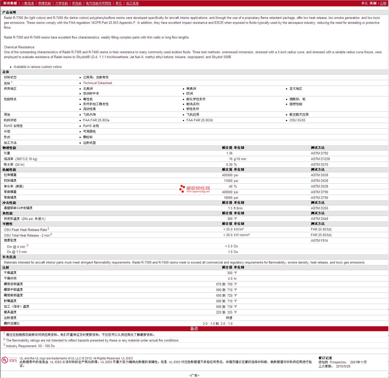 需了解Radel PPSU R-7300 物性表材质证明、ROHS(SGS)报告、物质安全资料表(MSDS)、UL黄卡等可来电咨询:赵先生:13424755533或QQ: 27660005