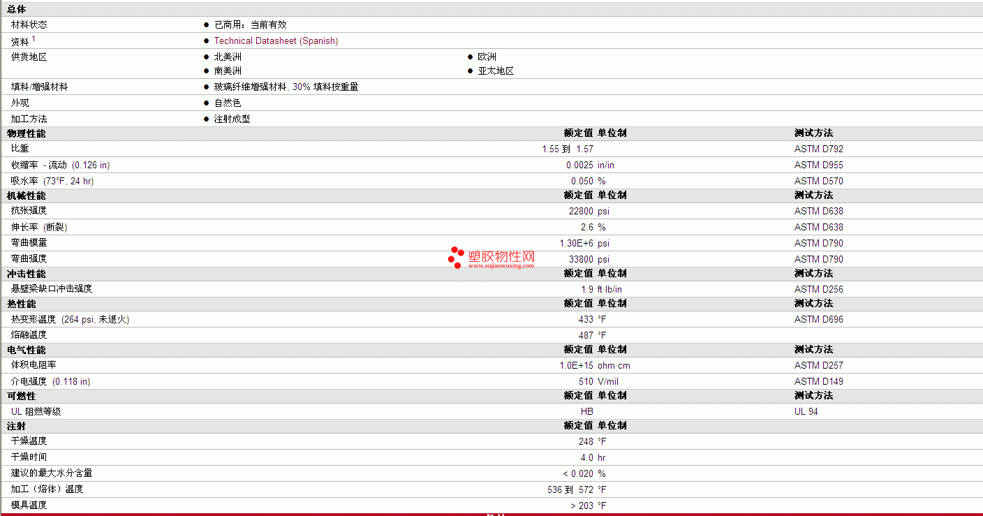 | 抗张强度 | 22800 | psi | ASTM D638 |