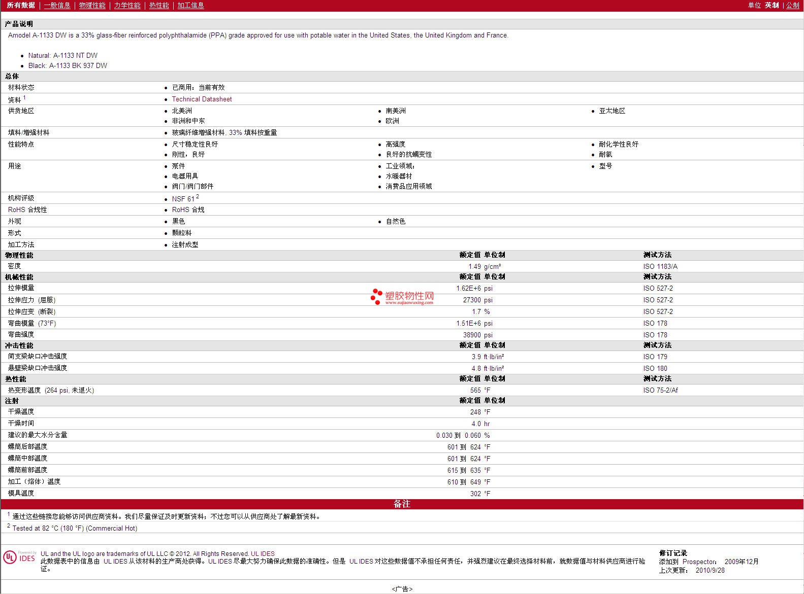 更多Amodel PPA A-1133 DW 物性表报价,图片、材质证明、UL黄卡、物质安全资料表(MSDS)等,最新行情报价等可来电咨询赵先生:13424755533或QQ: 27660005