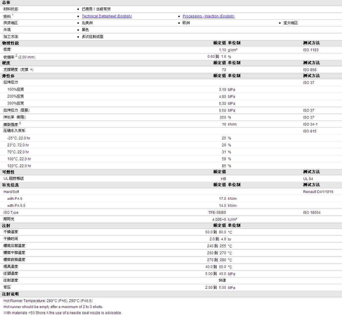 | 弹性体 | 额定值 | 单位制 | 测试方法 |