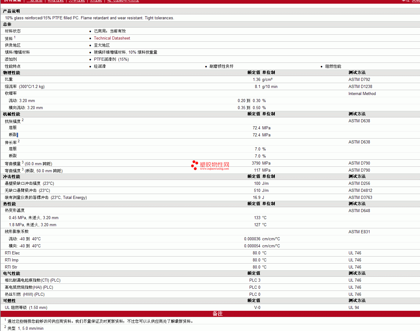 LNP pc Lubricomp* Lexan_LF1510A物性表图片