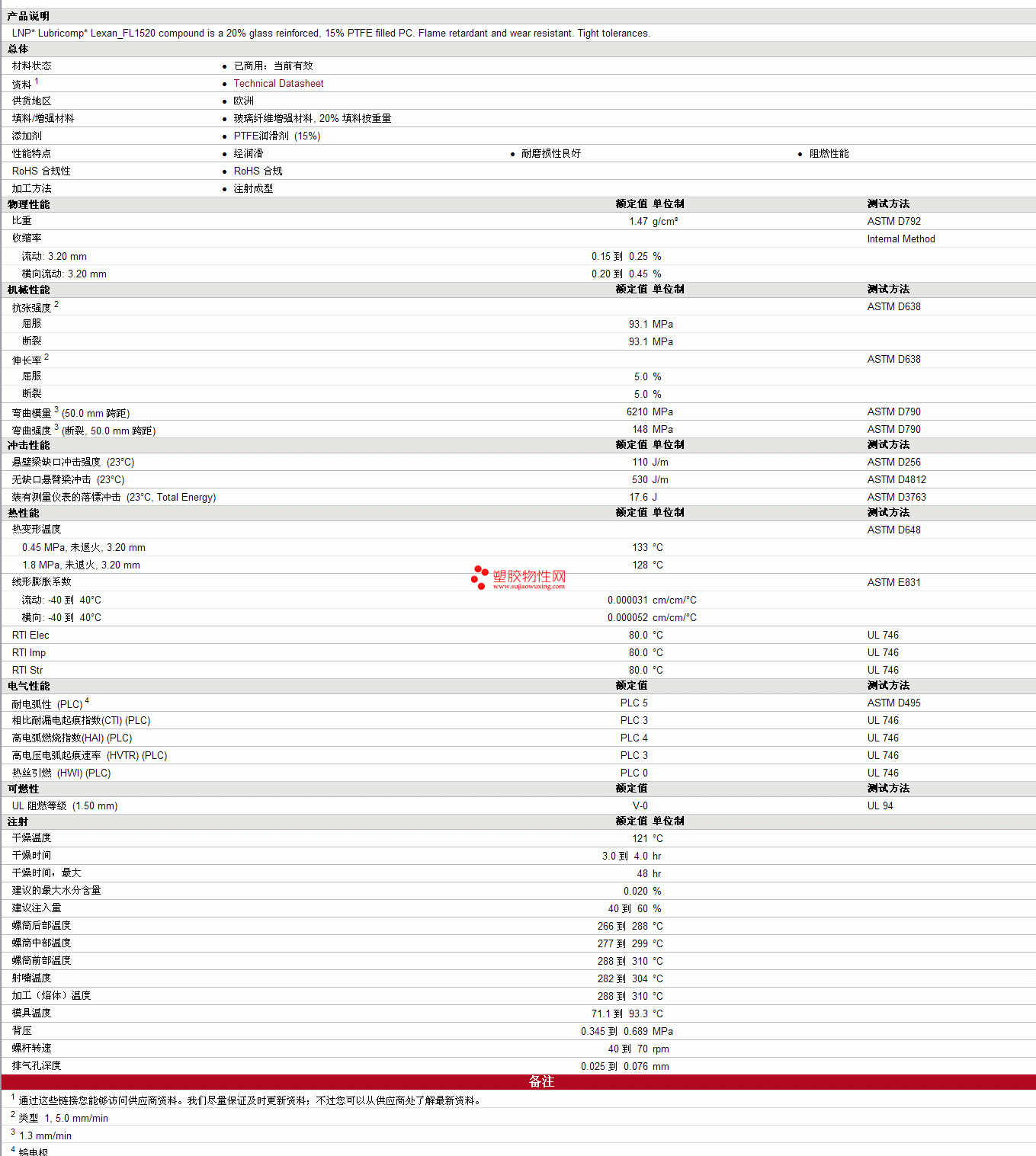 LNP pc Lubricomp* Lexan_LF1520A物性表 见图片